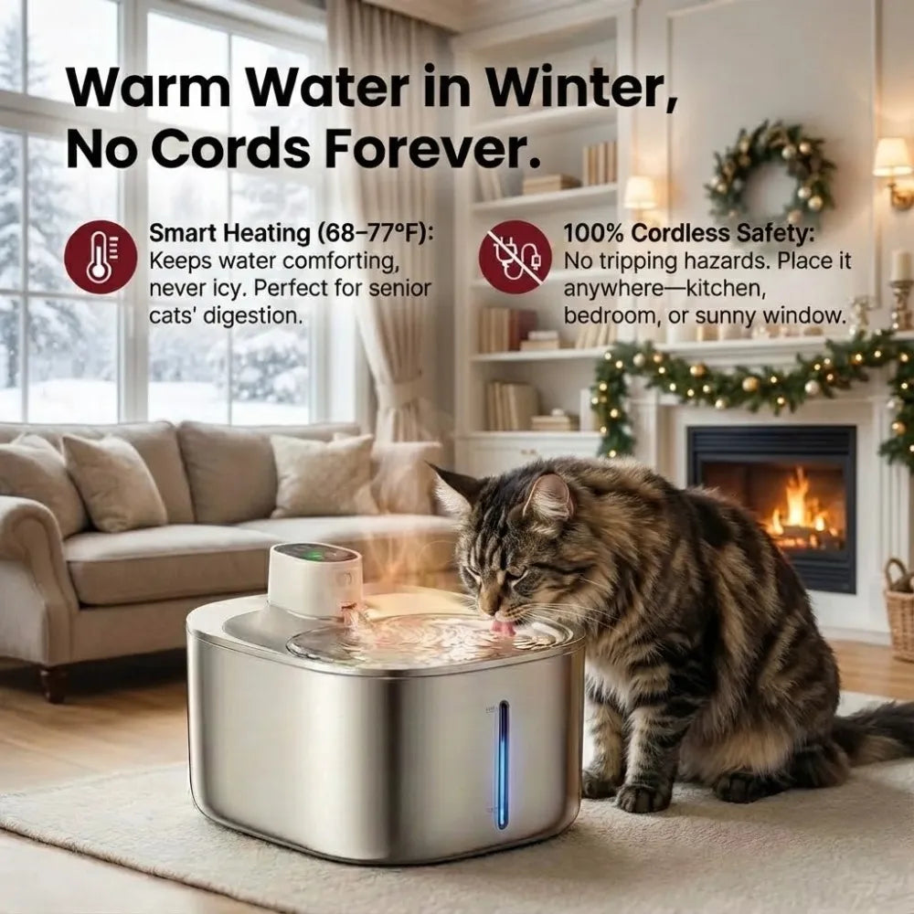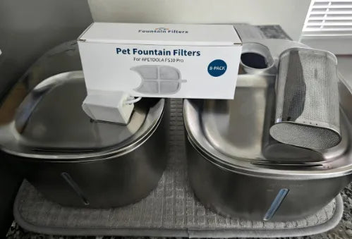 I love this pet water fountain! It keeps the water fresh and at the perfect temperature, encouraging my cat to drink more. The no-cord, spill-proof design makes setup and cleaning easy, and the free filter is a nice bonus for cleaner water!