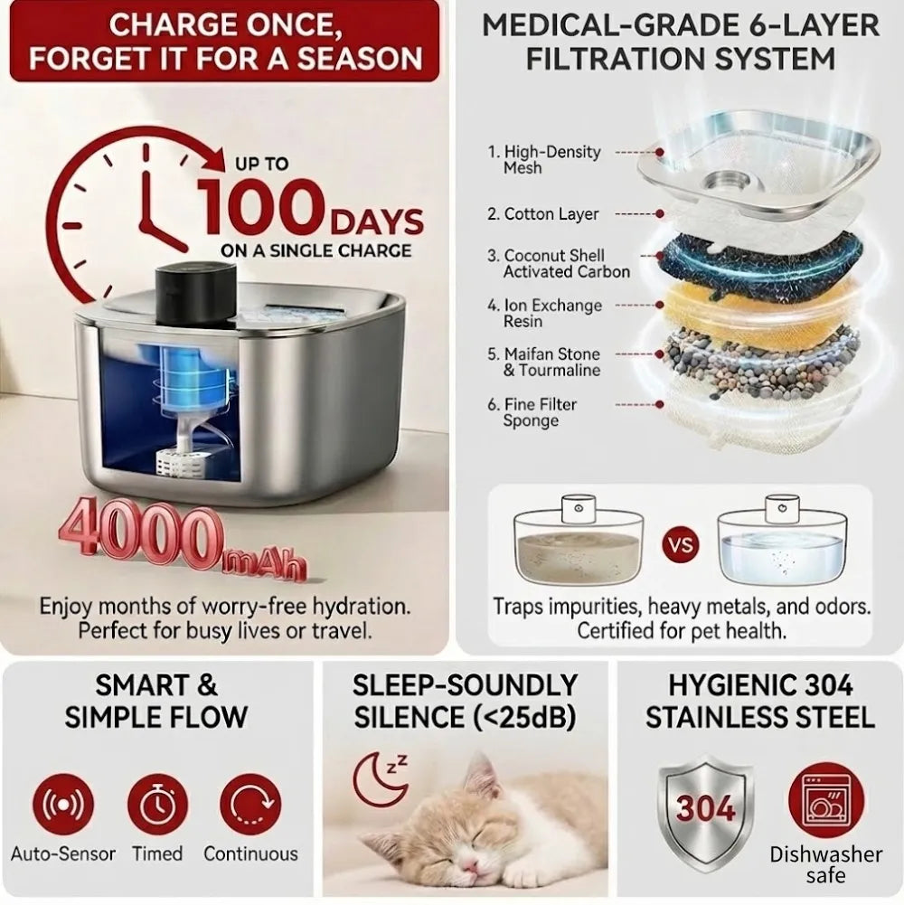 Wireless Freedom, Silent Care, Effortless Hydration for Your Pet!